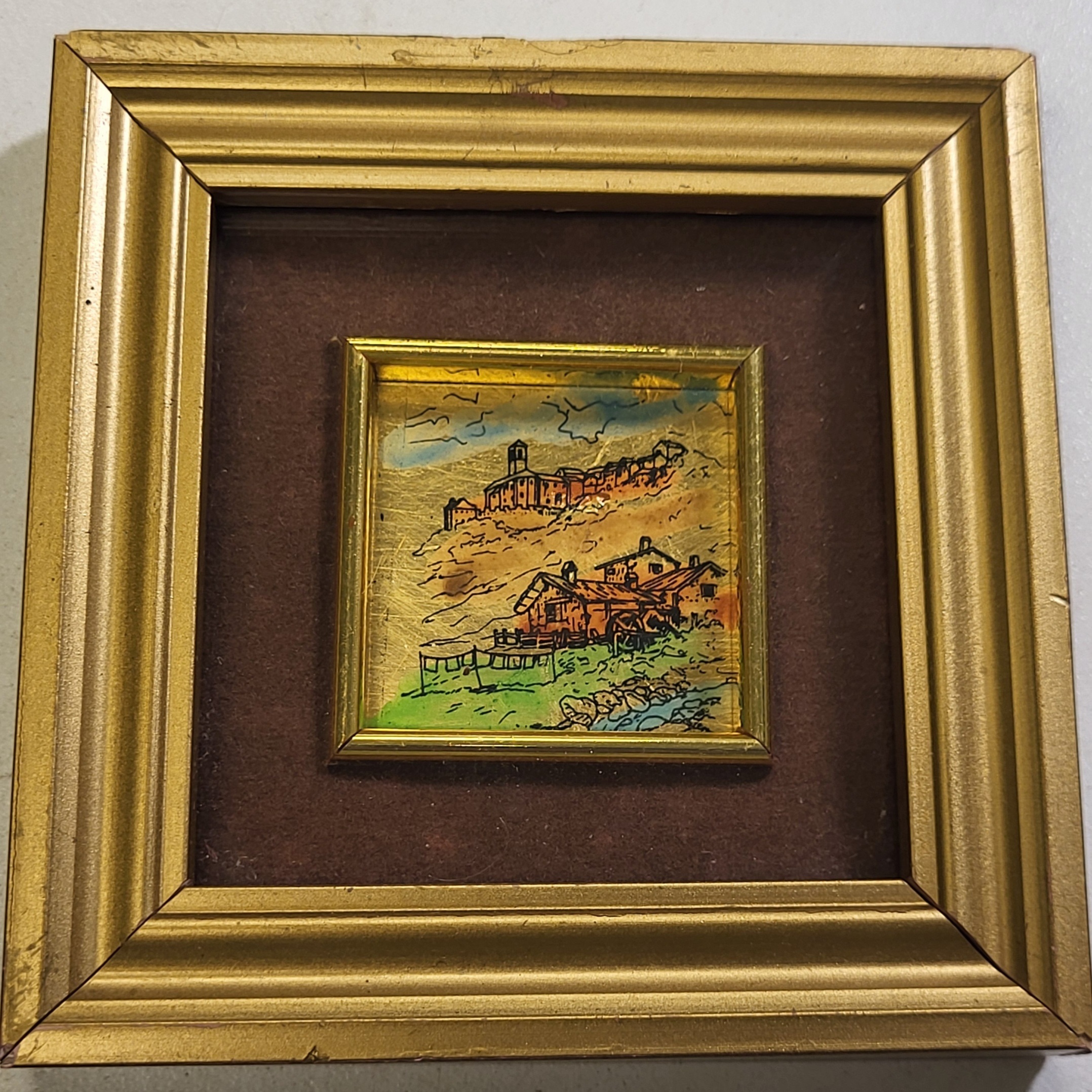 interior art size is 1 3/4″ x 3/4″ looks like 1923 written in ctr gold backed gold leaf? see pics