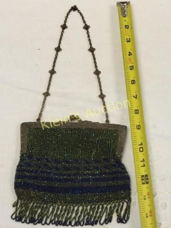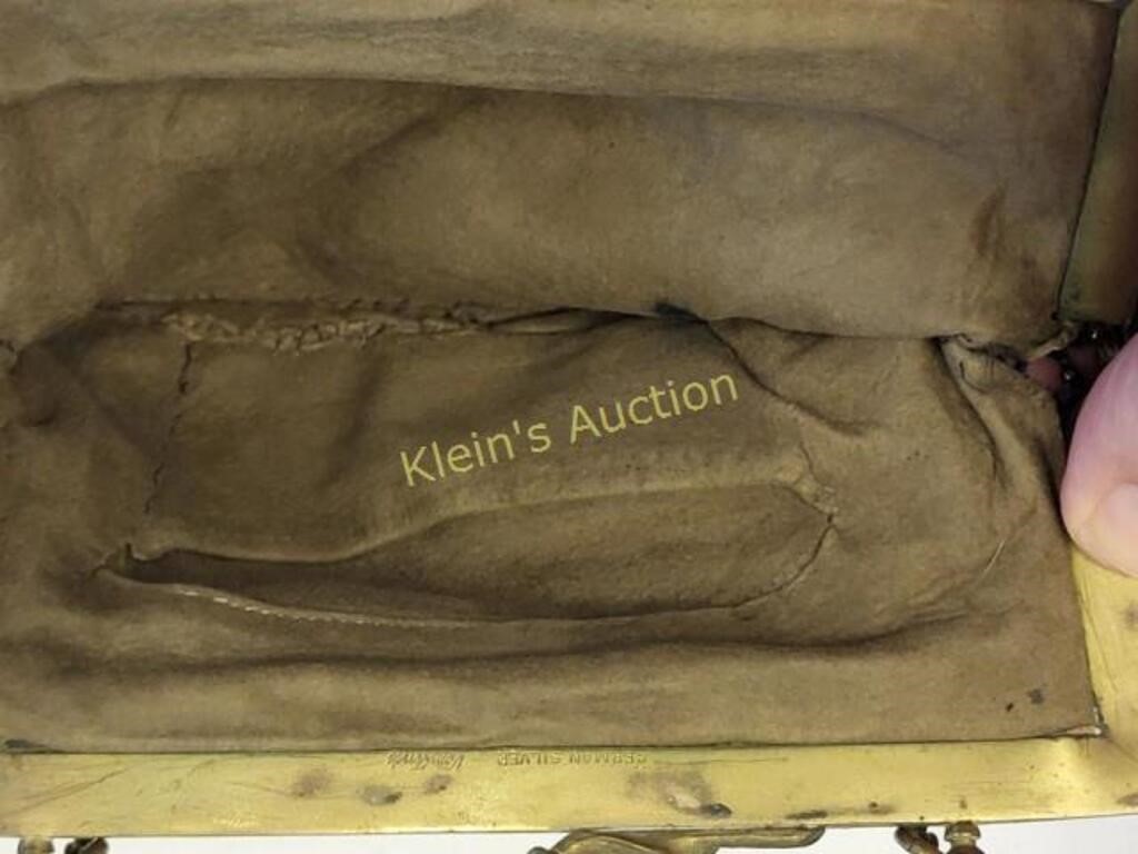 early example! beautiful glass beads signed vantines? and German silver see pics soft glove leather inside
