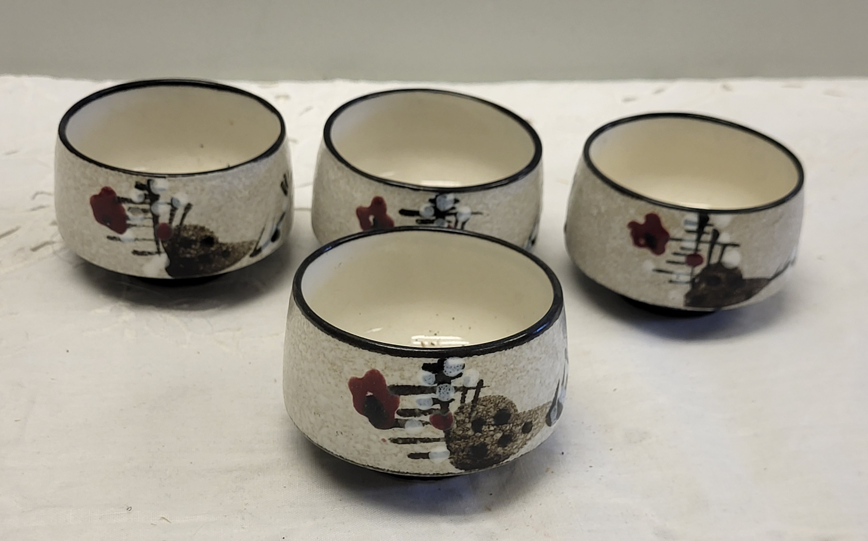 yunomi speckled glaze tea cups lot of 4 cherry blossom