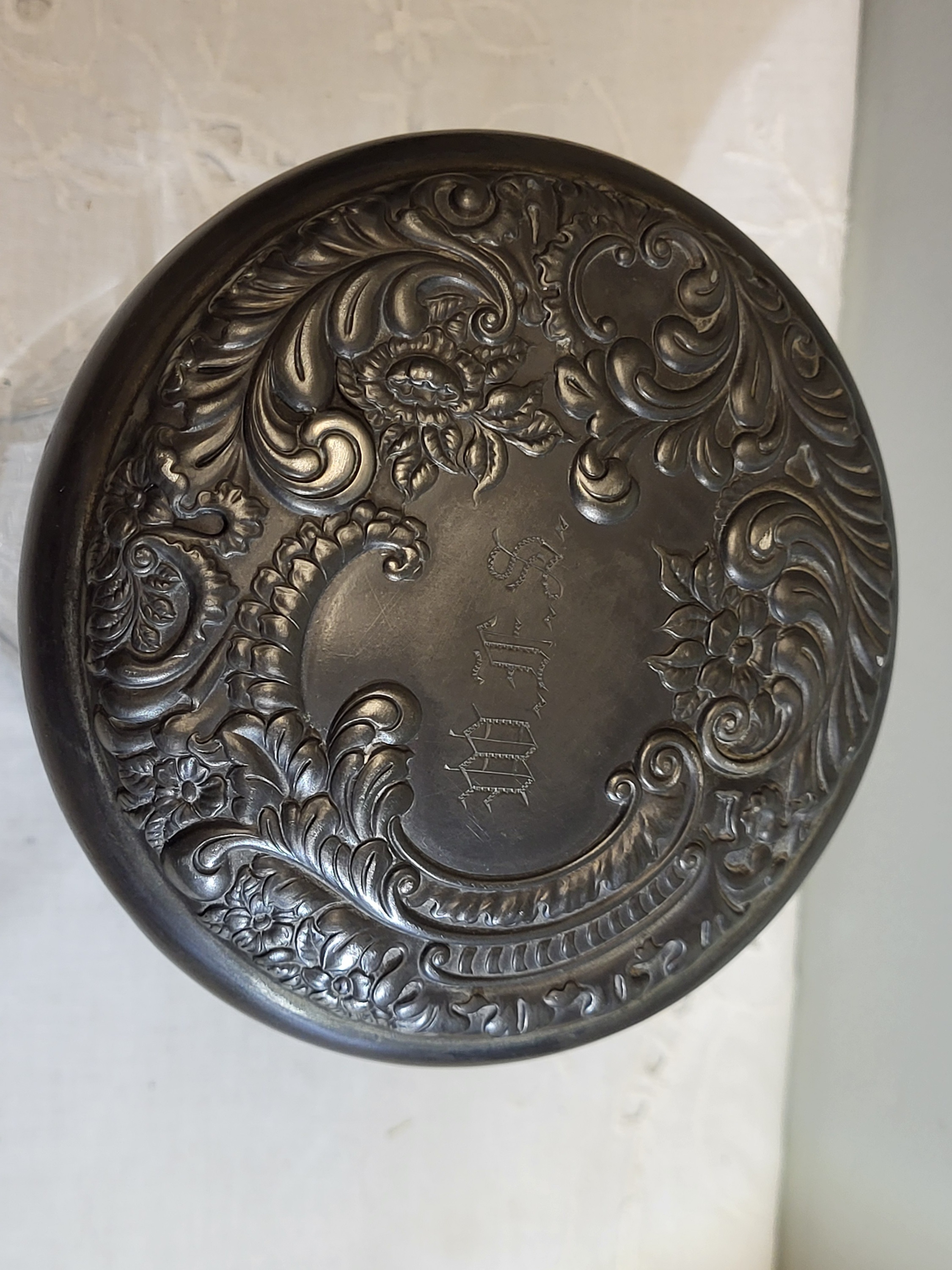 quadruple plate lid very nice overall 7″ tall 5 1/4″ widest top no damage noted see pics