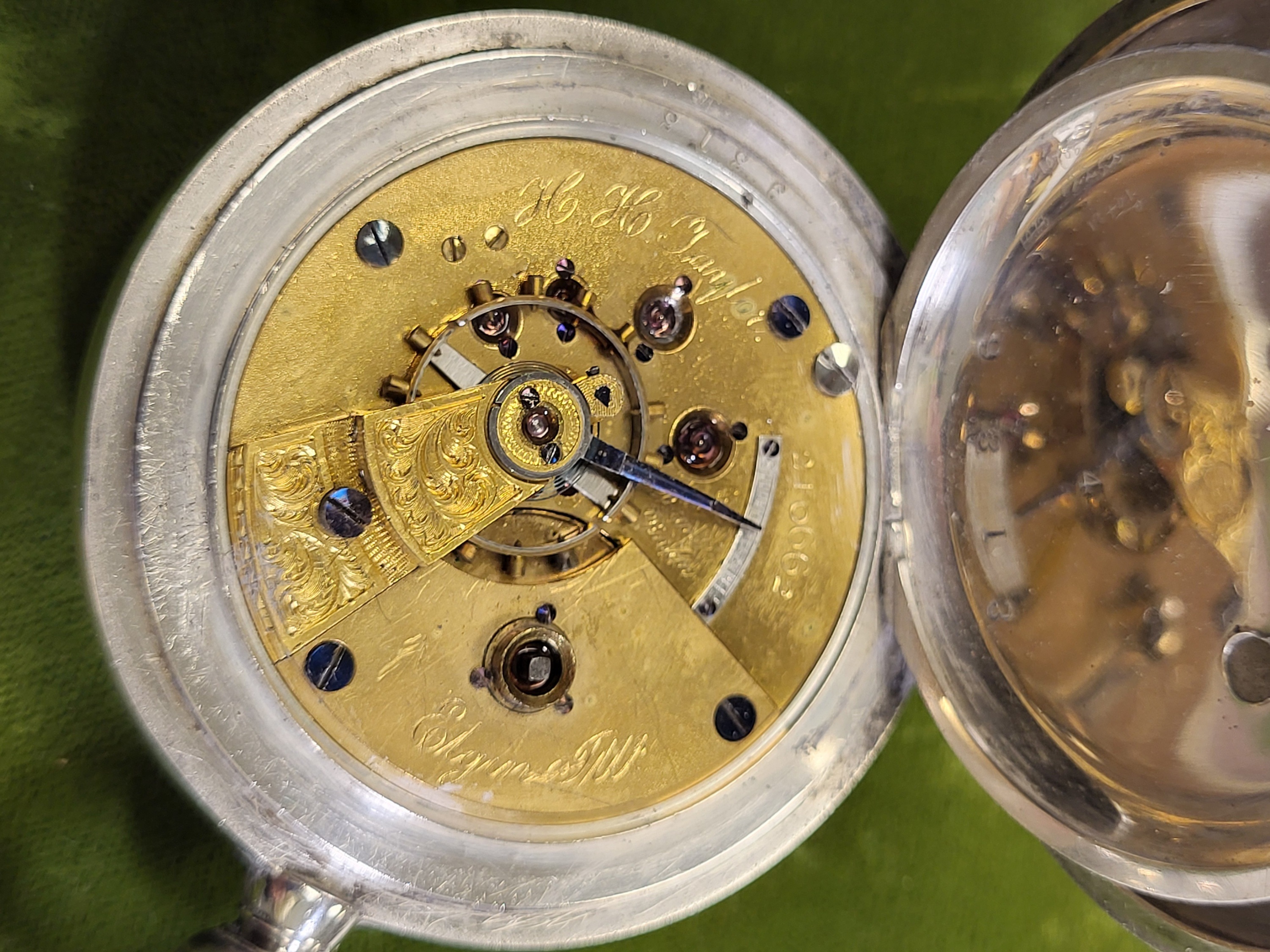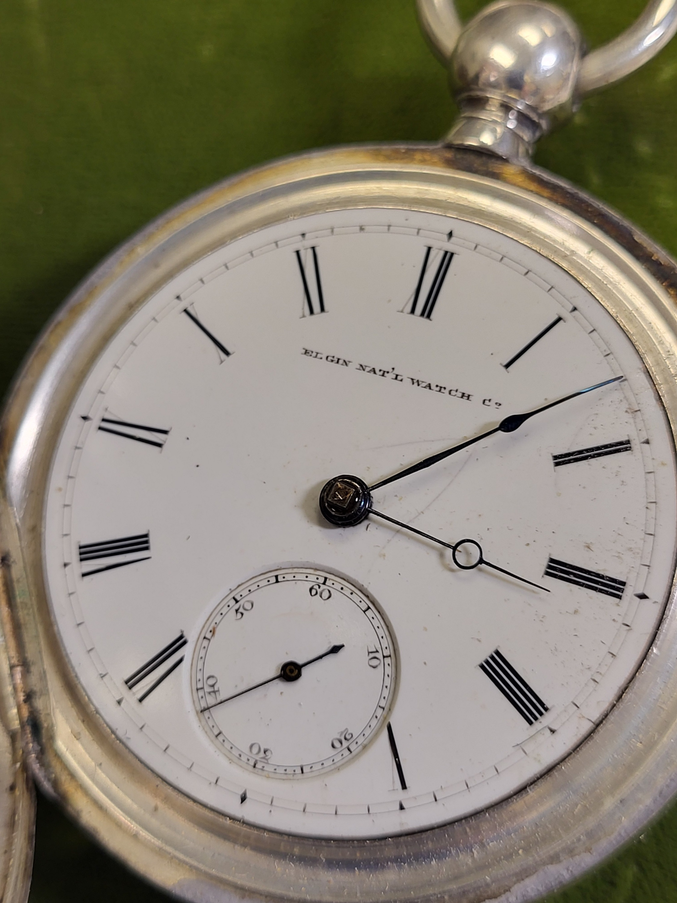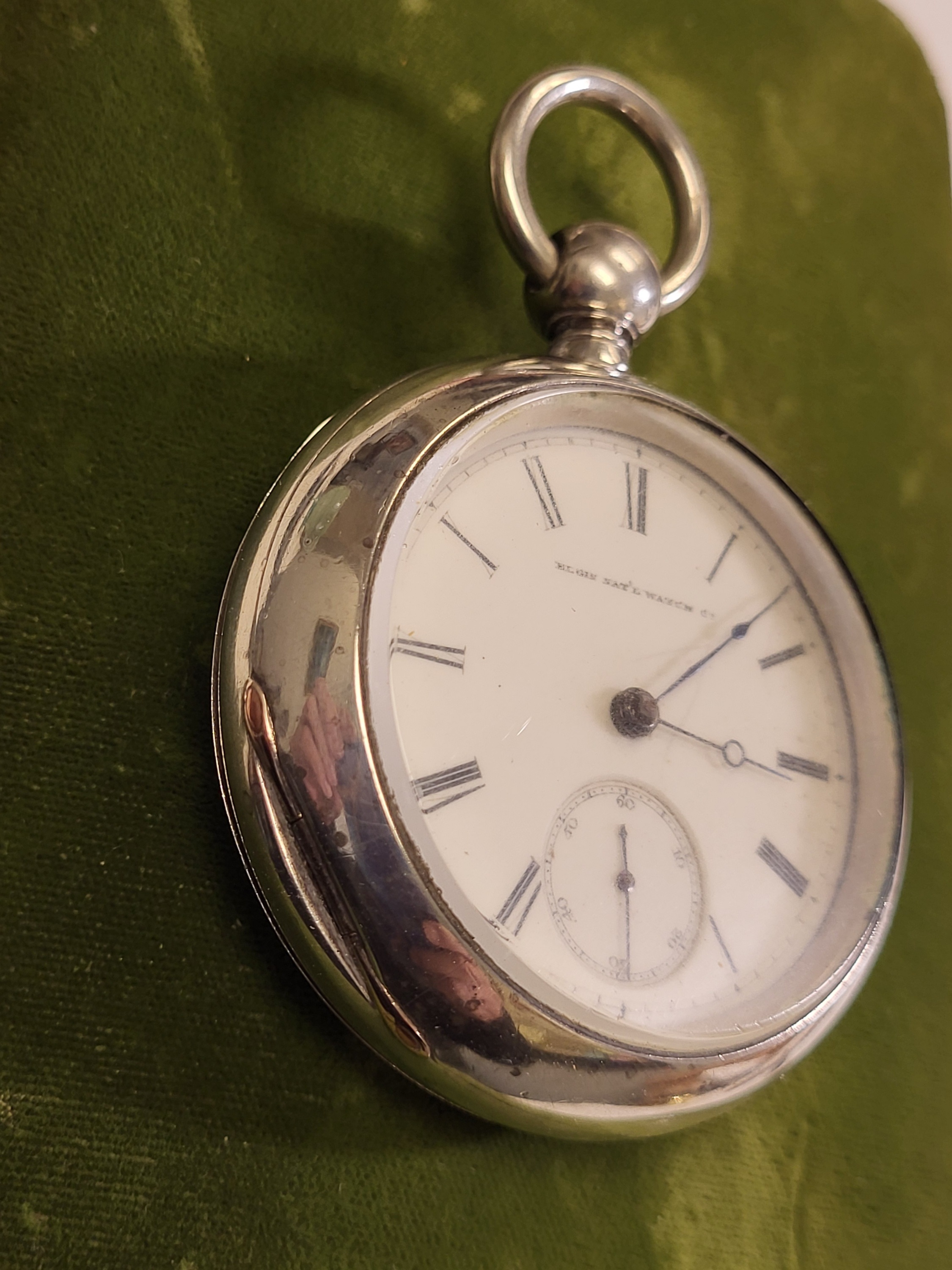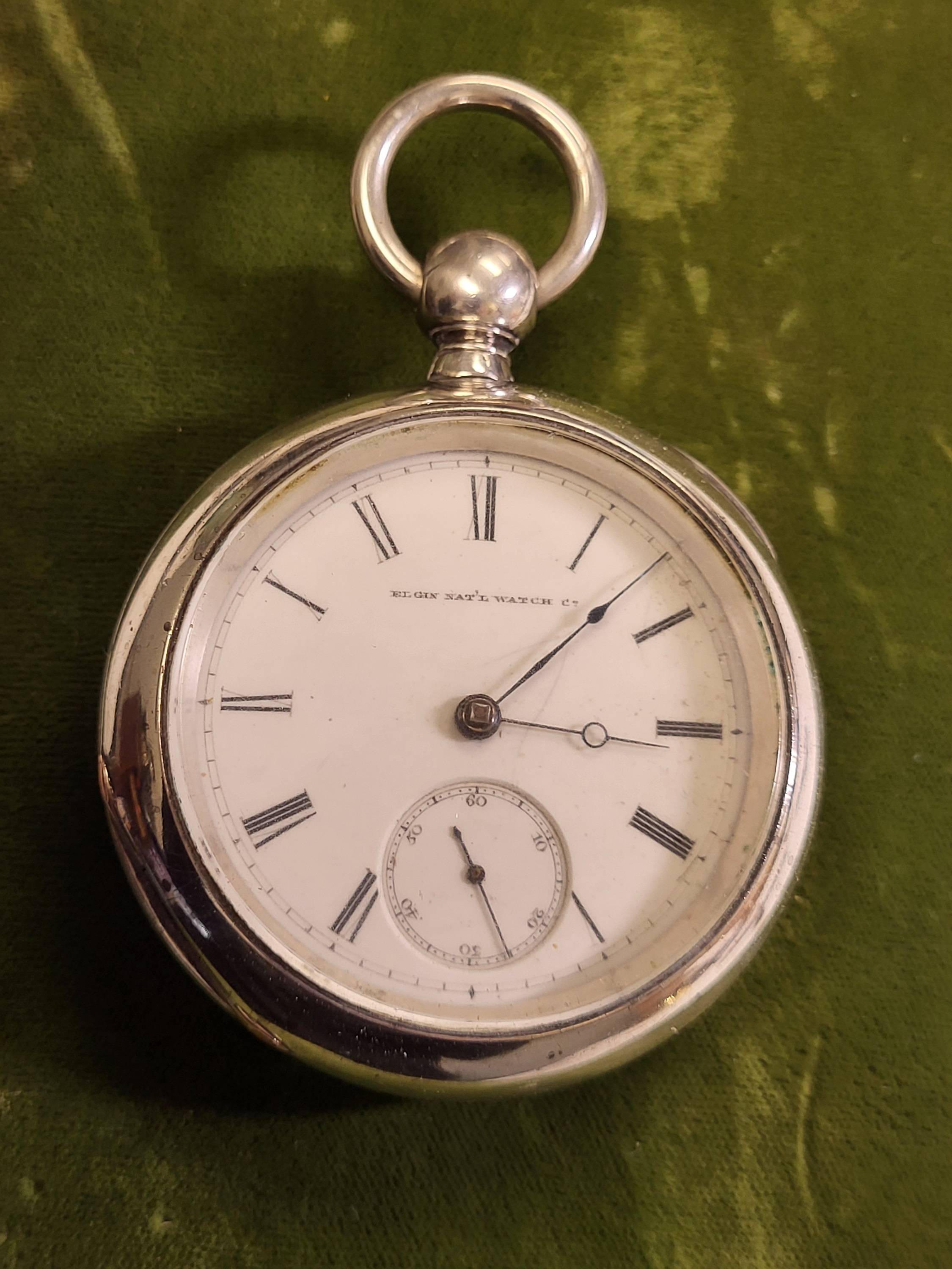Rare 1873 Elgin Coin silver pocket watch 18sz works H Taylor