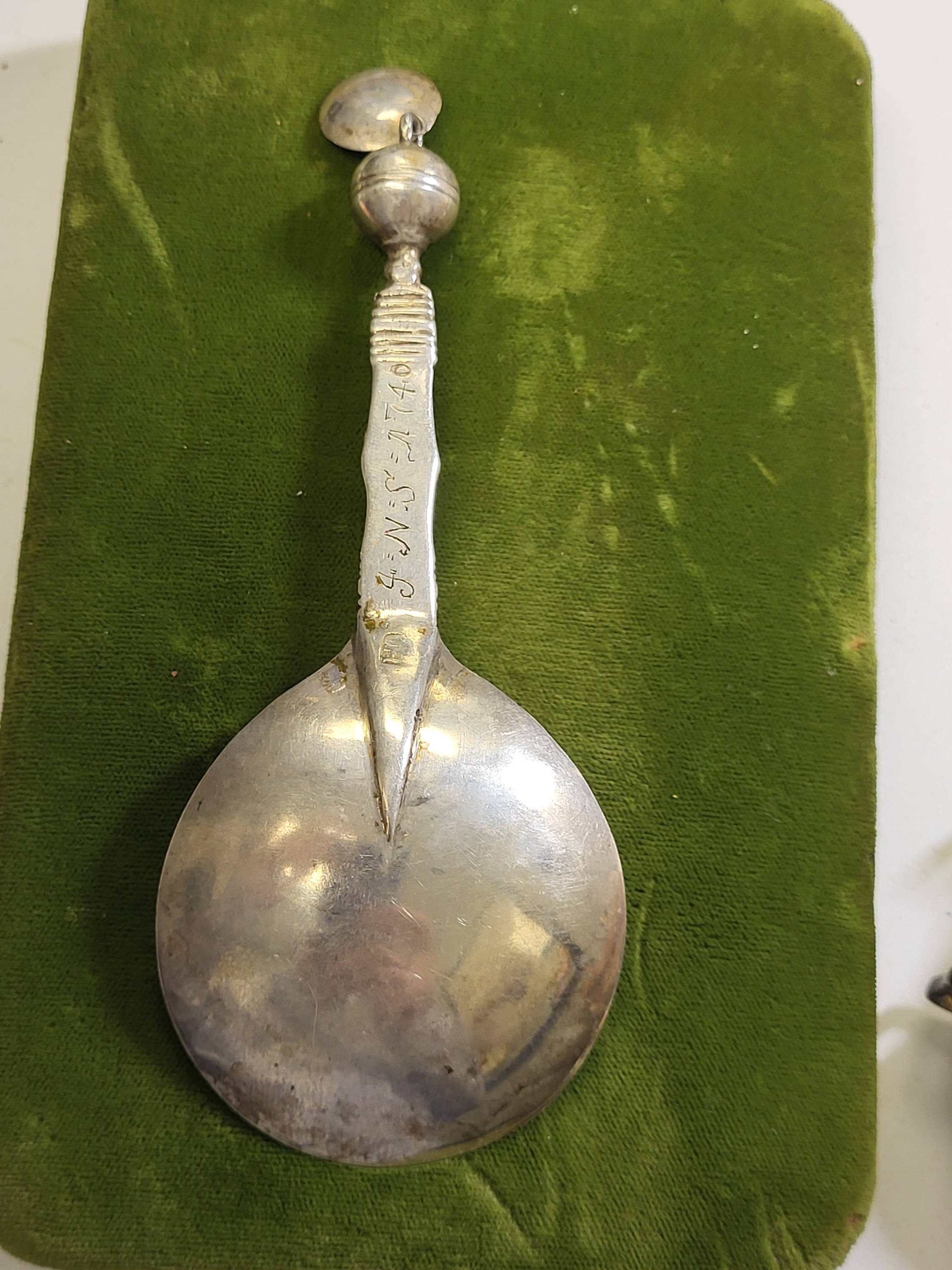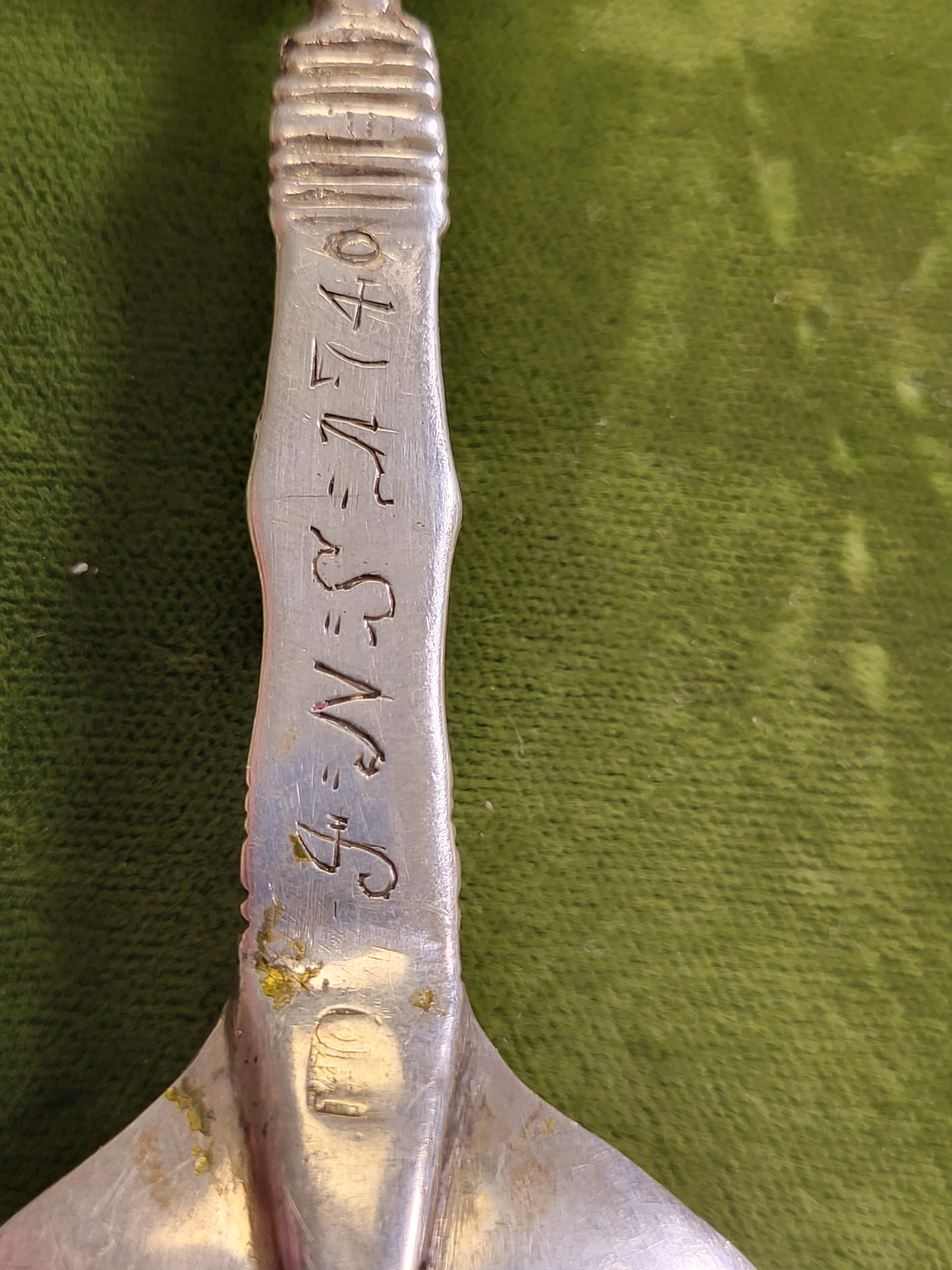 5″ long plus top 5 3/4″ signed on back maker HO likely Samuel Hood? very early 35.5 grams seepics