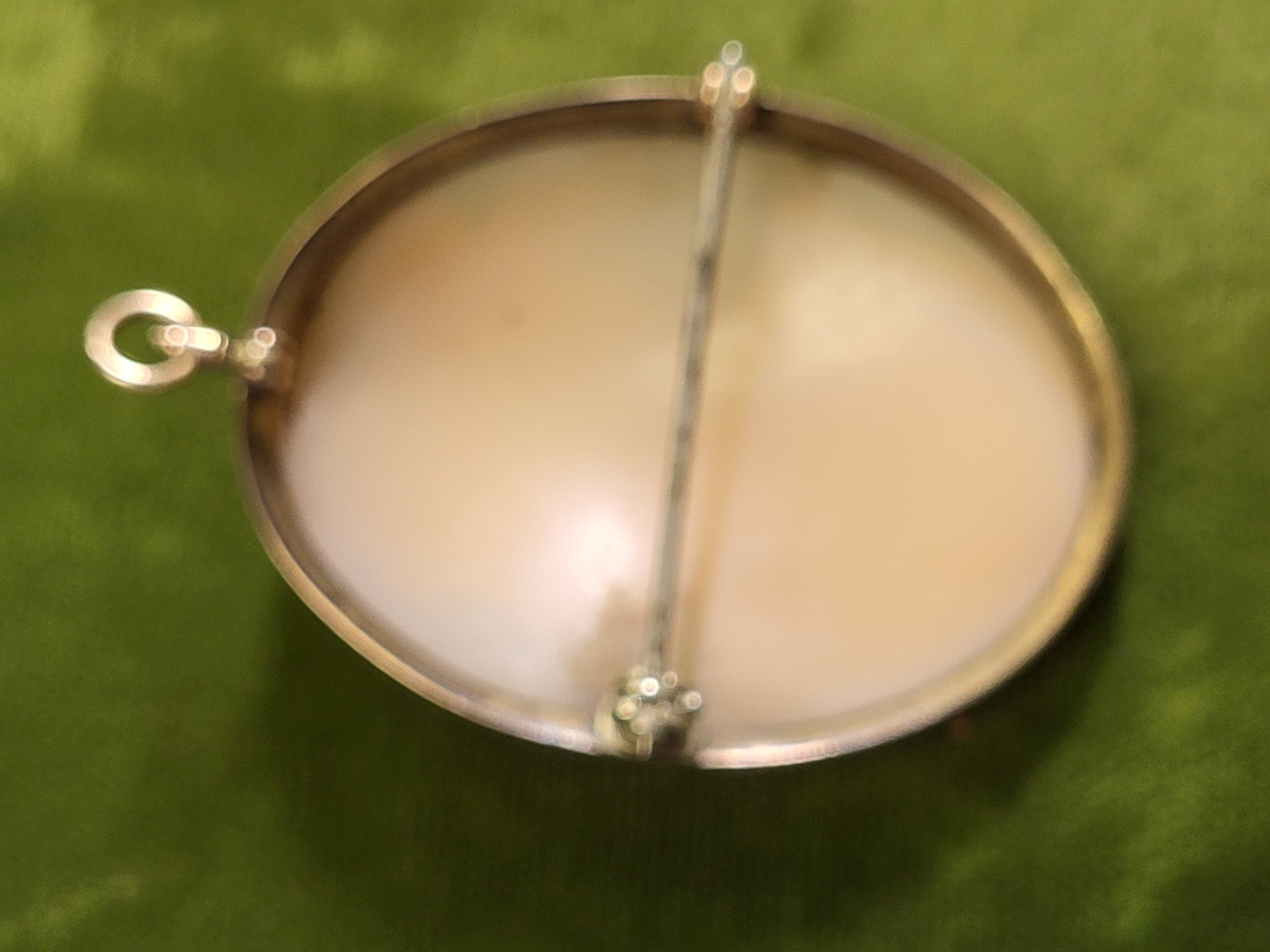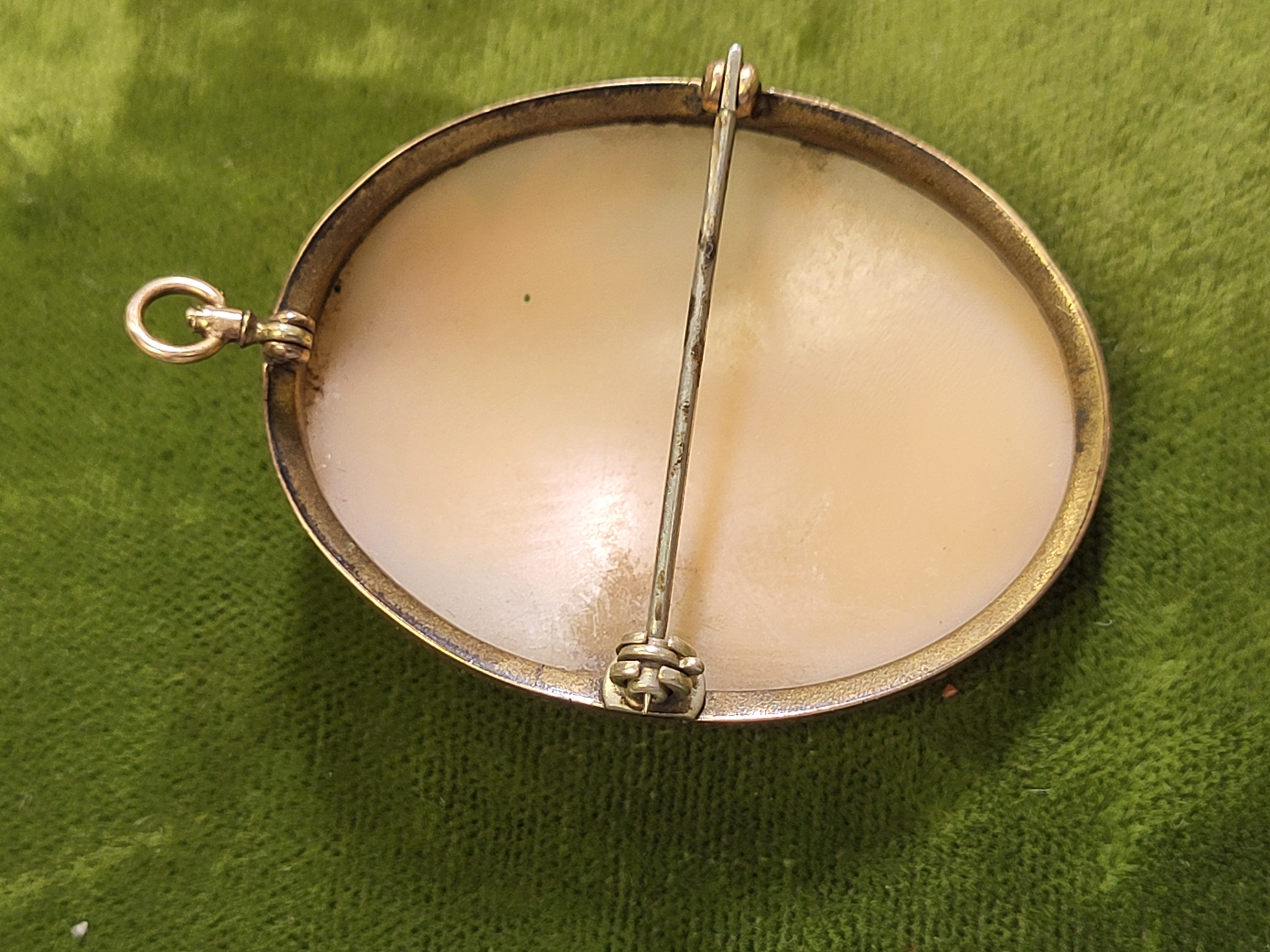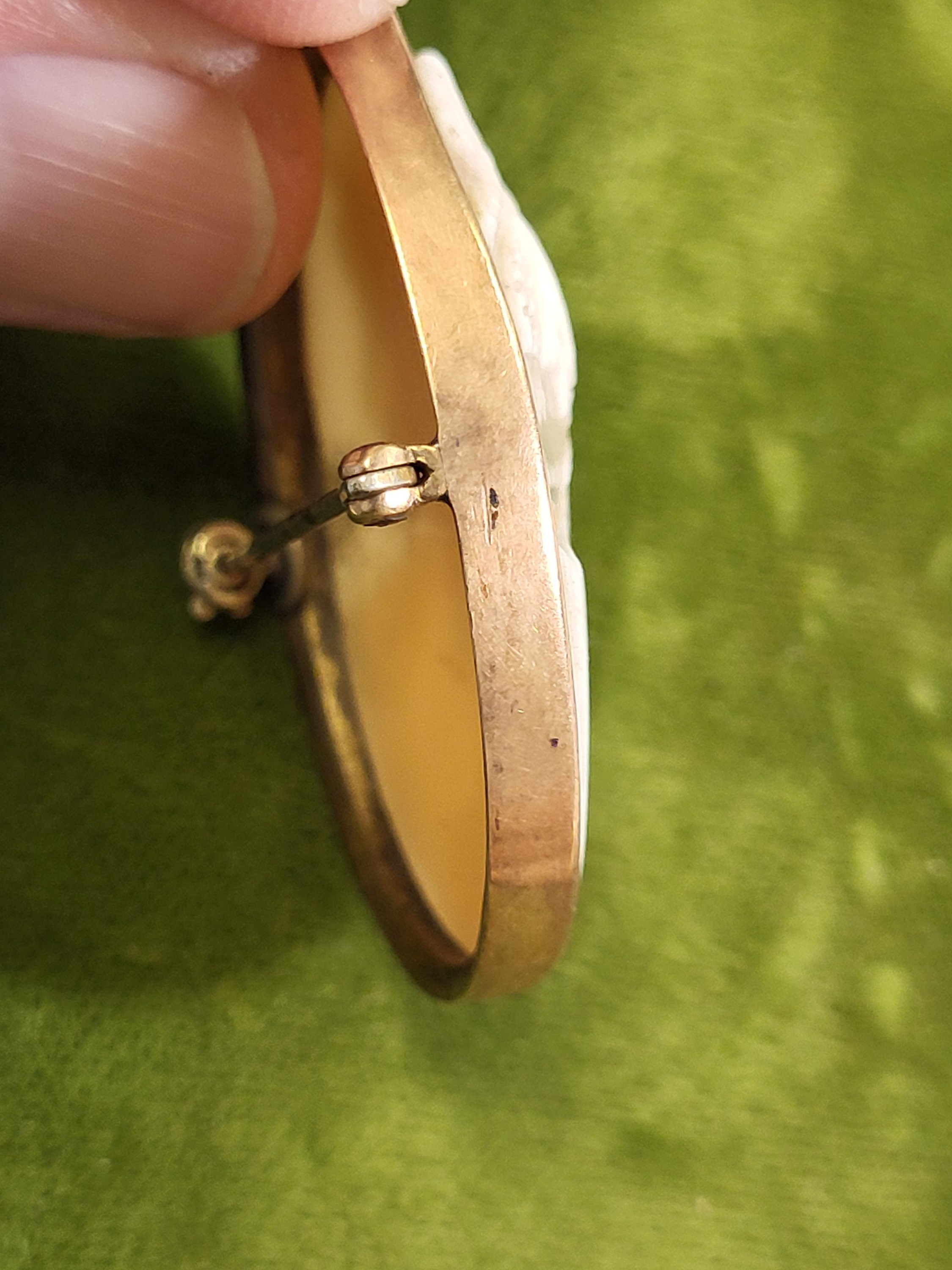 has rose gold cap and yellow gold frame tested 14K 1 1/2″ x 1 1/4″ 9.8 grams looks like angel skin see pics