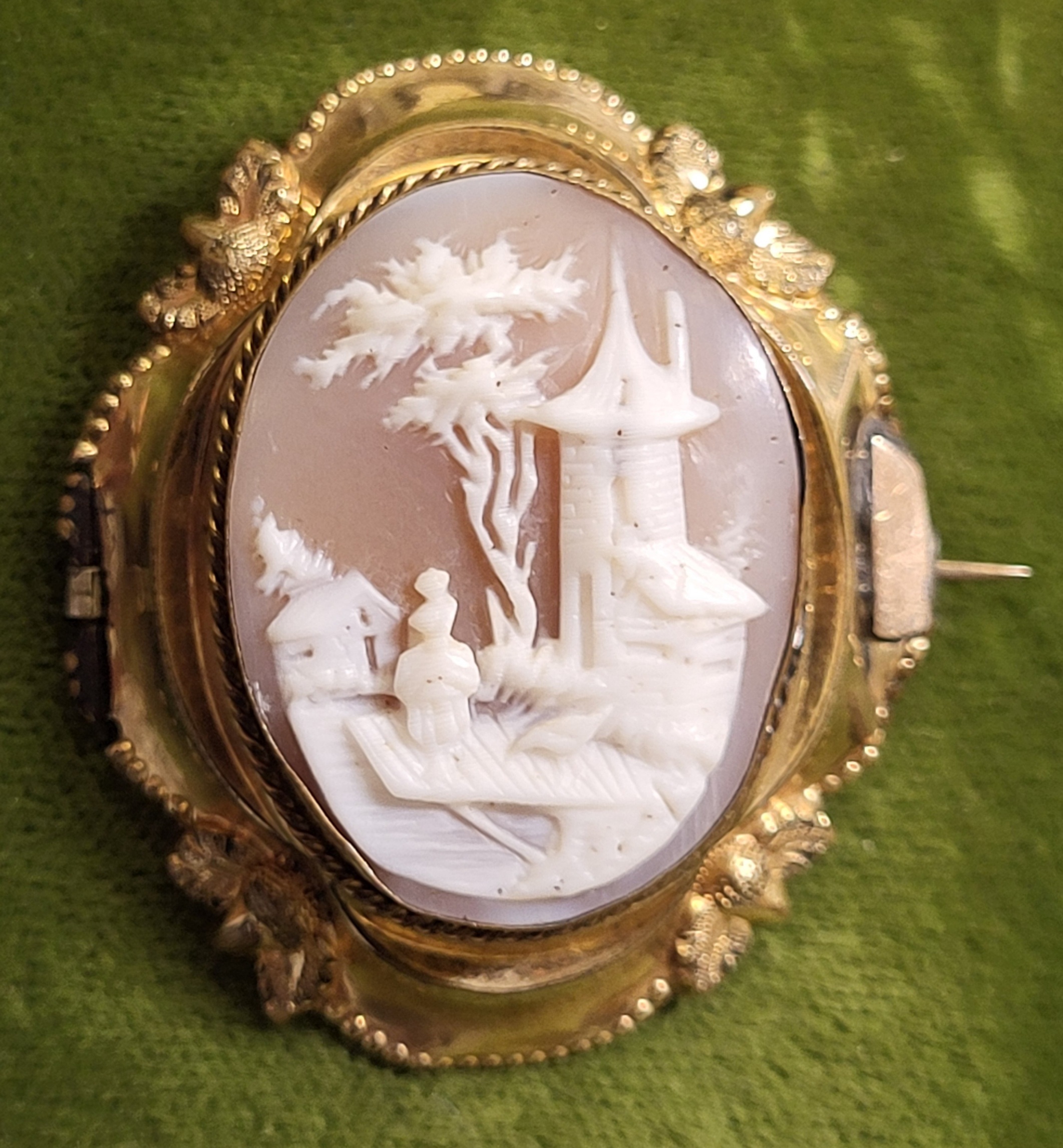 1 5/8″ x 1 1/4″ stunning detailing yellow gold plated and filled brooch pin see pic