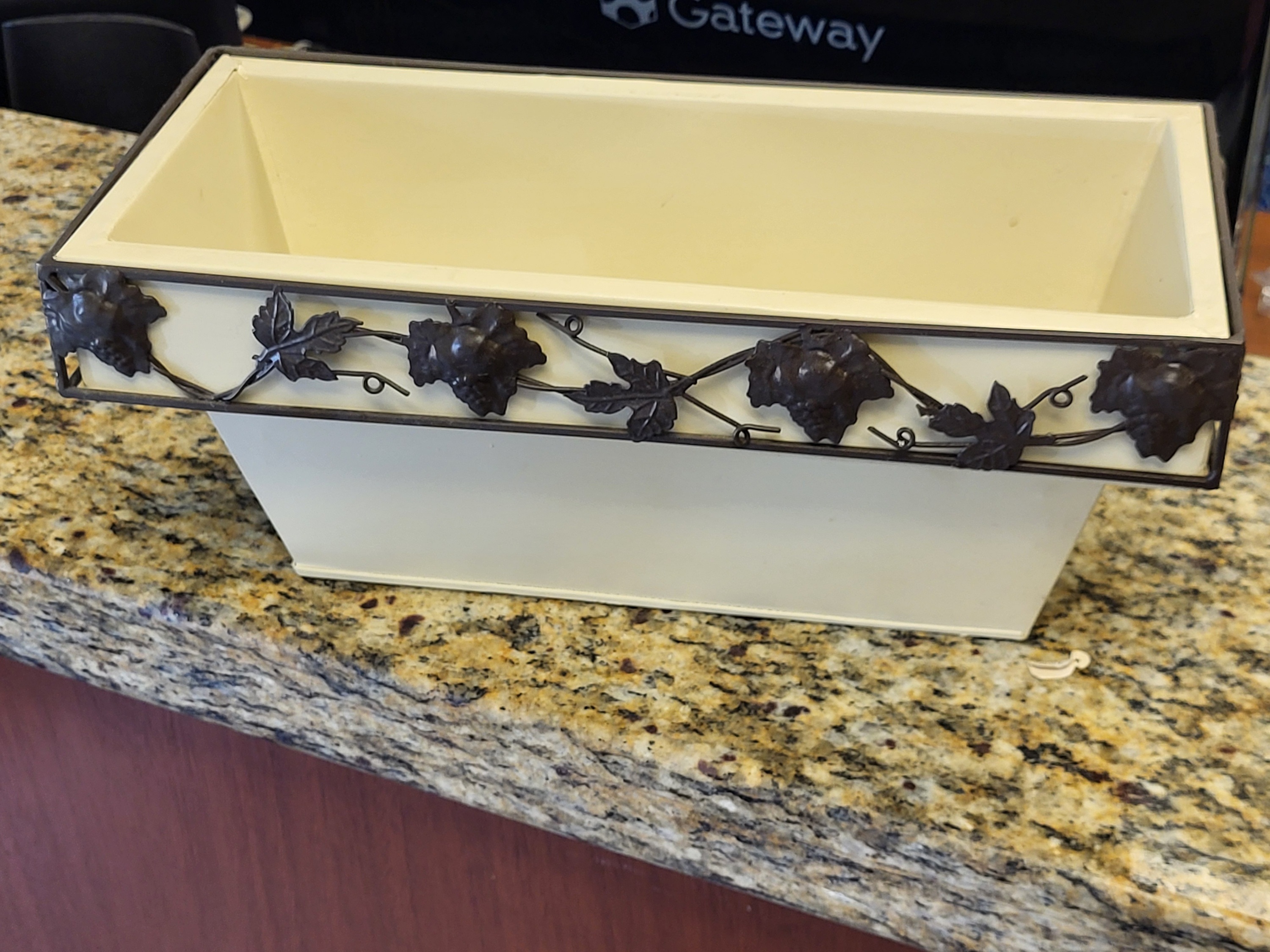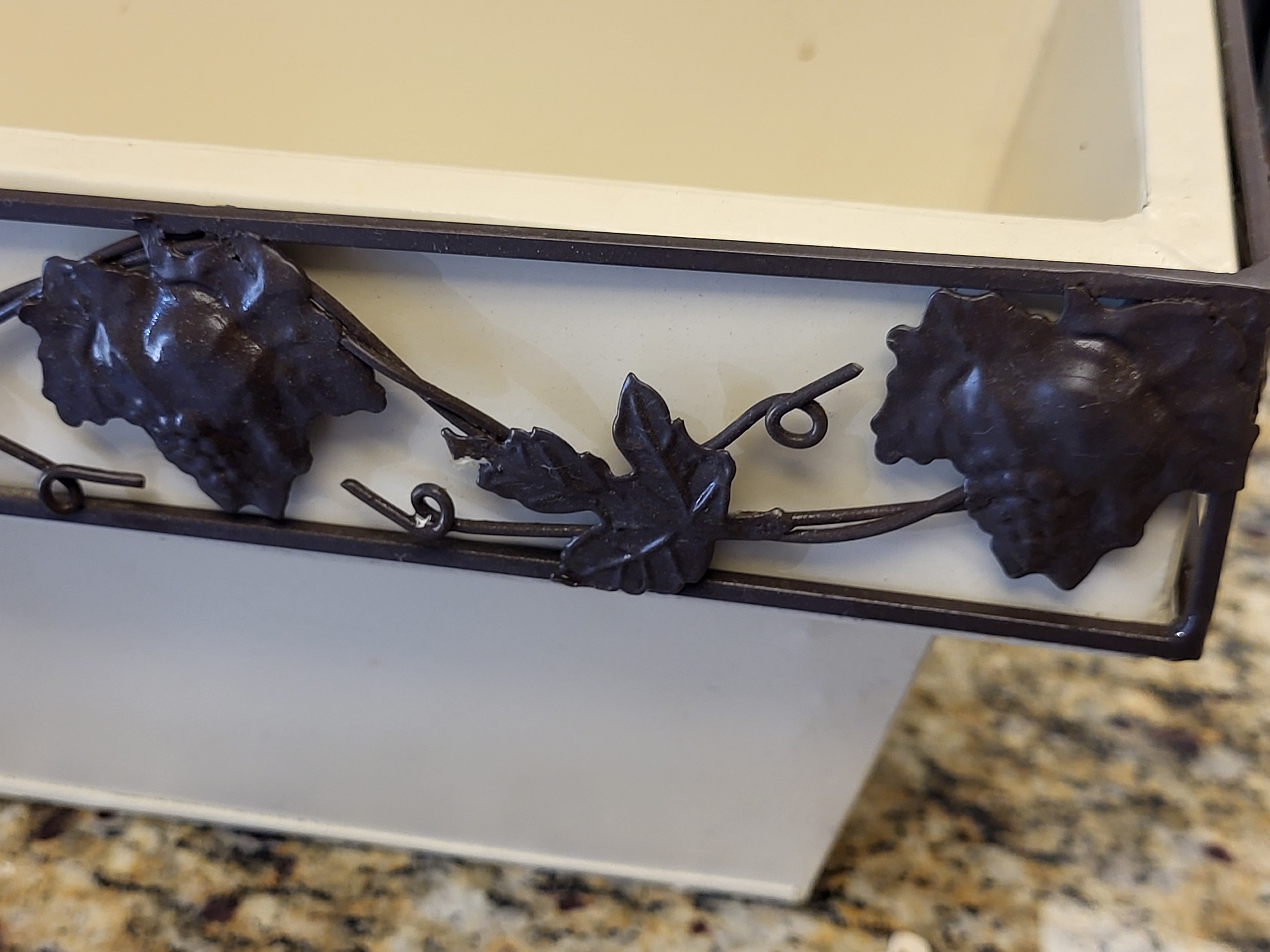 removable tin leaf detail edging in great shape 6″ tall x 14″ x 6″ see pics
