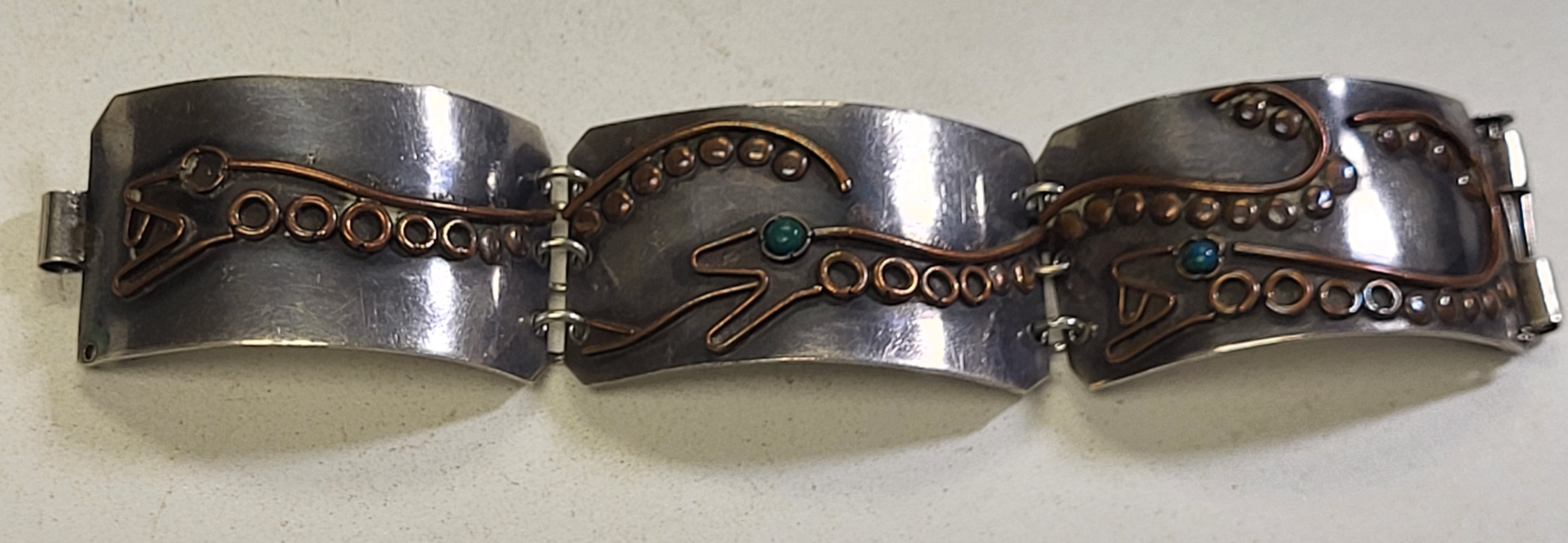 Beckmann Carmen Navaho sterling panel bracelet lizard